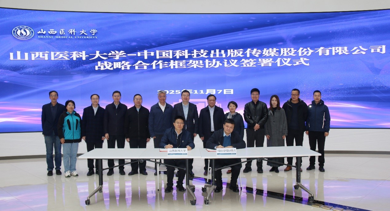 11月7日上午, 山西醫科大學—中國科技出版傳媒股份有限公司戰略合作框架協議簽署儀式在山西醫科大學圓滿舉行,雙方攜手開啟共筑學術高地、服務醫學創新的新篇章。